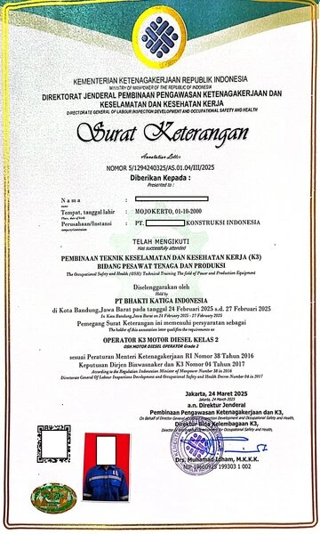 - Operator Alat Berat (Excavator, Loader, Backhoe, dll)